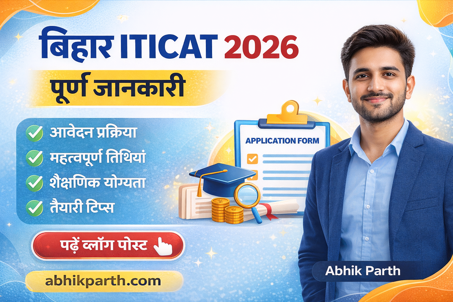 अगर आप बिहार में ITI (Industrial Training Institute) में एडमिशन लेना चाहते हैं, तो बिहार ITICAT 2026 आपके लिए एक सुनहरा अवसर है। इस परीक्षा के माध्यम से छात्र विभिन्न ट्रेड्स में प्रवेश पा सकते हैं। इस ब्लॉग में हम आपको आवेदन प्रक्रिया, महत्वपूर्ण तिथियां, योग्यता और अन्य जरूरी जानकारी देंगे।
