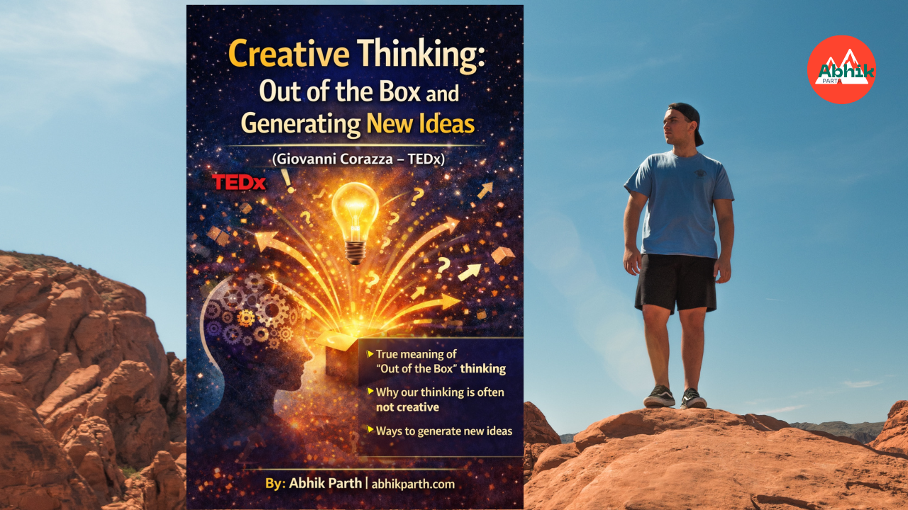 (Giovanni Corazza – TEDx से सीख) लेखक: Abhik Parthस्वागत है आपका मेरे ब्लॉग पर 🙏 आज की दुनिया में सबसे ज़्यादा value किस चीज़ की है?👉 Creative Thinking डिग्री, knowledge और experience सबके पास है,लेकिन जो इंसान बाकी लोगों से अलग सोच पाता है, वही आगे बढ़ता है। इसी विषय पर एक शानदार TEDx Talk दिया हैGiovanni Corazza ने –“Creative Thinking: How to Get Out of the Box and Generate Ideas” इस ब्लॉग में हम समझेंगे: Creative thinking क्या है “Out of the box” सोचने का मतलब क्या होता है हम creative क्यों नहीं बन पाते और practical तरीकों से नए ideas कैसे generate करें Creative Thinking क्या होती है? Creative thinking का मतलब यह नहीं है कि आप painter हों या writer। 👉 Creative thinking का मतलब है:एक ही समस्या को अलग नज़रिए से देख पाना। उदाहरण: सब लोग समस्या देख रहे हैं Creative इंसान solution देखता है Giovanni Corazza कहते हैं: “Creativity कोई talent नहीं है, यह एक skill है — जिसे सीखा जा सकता है।” Read :-लोगों के साथ आत्मविश्वास कैसे बढ़ाएँ “Out of the Box” सोचने का असली मतलब अक्सर हम सुनते हैं — “Think out of the box”लेकिन box है क्या? 👉 Box है: हमारी आदतें हमारा डर हमारी fixed thinking “ये नहीं हो सकता” वाली सोच Out of the box सोचने का मतलब है:पुरानी boundaries को तोड़कर सोचना। हम Creative क्यों नहीं बन पाते? Giovanni Corazza इसके 3 बड़े कारण बताते हैं: 1️⃣ डर (Fear) लोग क्या कहेंगे Idea fail हो गया तो? मज़ाक बन गया तो? 👉 डर creativity का सबसे बड़ा दुश्मन है। Click:-नए साल के 10 Life-Changing Tips 2️⃣ बचपन में गलत conditioning बचपन में हमें सिखाया जाता है: गलती मत करो सही जवाब दो नियम तोड़ना गलत है जबकि creativity:👉 गलती से ही पैदा होती है। 3️⃣ Comfort Zone हम वही करते हैं जो safe लगता है। लेकिन: “No comfort zone, no creativity.” Creativity और Logic साथ चल सकते हैं बहुत लोग सोचते हैं: Logic = Serious Creativity = Funny Giovanni Corazza कहते हैं:👉 Creativity + Logic = Innovation उदाहरण: Smartphone Online education Digital payment ये सब creative ideas + logical execution का result हैं। Creative Thinking के लिए सही Mindset Creative बनने के लिए सबसे पहले सोच बदलनी पड़ती है। Creative Mindset के नियम: हर idea perfect नहीं होगा गलती होना normal है सवाल पूछना ज़रूरी है अलग दिखना गलत नहीं है 👉 जब आप खुद को permission देते हैं, तभी creativity आती है। Practical Technique 1: “What If” Method Giovanni Corazza का powerful तरीका: खुद से सवाल पूछिए: What if money problem न हो? What if failure possible ही न हो? What if मैं गलत भी हो जाऊँ? Example: What if school में exam ही न हो?👉 New education system idea पैदा हो सकता है। Practical Technique 2: Mistake को दोस्त बनाइए Creativity perfection से नहीं आती। Example: Post-it notes गलती से बनेPenicillin accident से मिला 👉 गलती = नया idea इसलिए:गलती से डरना बंद करें। Practical Technique 3: Child Mindset अपनाइए बच्चे creative क्यों होते हैं? क्योंकि उन्हें डर नहीं होता क्योंकि वो सवाल पूछते हैं क्योंकि वो experiment करते हैं Practice: “क्यों?” पूछना शुरू करें हर चीज़ को obvious मत मानिए Practical Technique 4: Box को पहले समझिए Out of the box सोचने से पहले👉 box को समझना ज़रूरी है। Box मतलब: Rules Process Assumptions जब आप assumptions तोड़ते हैं, ideas निकलते हैं। Practical Technique 5: अकेले नहीं, मिलकर सोचिए Creativity अकेले दिमाग से नहीं आती। Giovanni Corazza कहते हैं: “Creativity is a social process.” Example: Brainstorming sessionDifferent background वाले लोगDifferent thinking style 👉 Collective thinking = better ideas रोज़ Cre